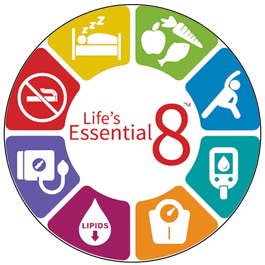 Life’s Essential 8 are the key measures for improving and maintaining cardiovascular health, as defined by the American Heart Association. Better cardiovascular health helps lower the risk for heart disease, stroke and other major health problems. You can get all of the information from the American Heart Association.